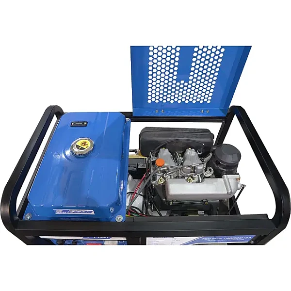 Дизель генератор TSS SDG 14000EH3A NEW (100140) предназначен для выработки электроэнергии с основными характеристиками: напряжение 230-400 вольт, частота 50 Гц и номинальной мощностью 12 кВт, оснащенный колесным комплектом для удобства передвижения.