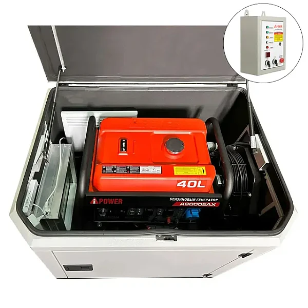 Купить Генератор A-iPower A9000EAX в тихом зимнем кожухе 1200 RAL 7035 + блок автозапуска A-iPower 230 В, 50 А в Ульяновске легко — просто позвоните по телефону: 8-800-551-11-01