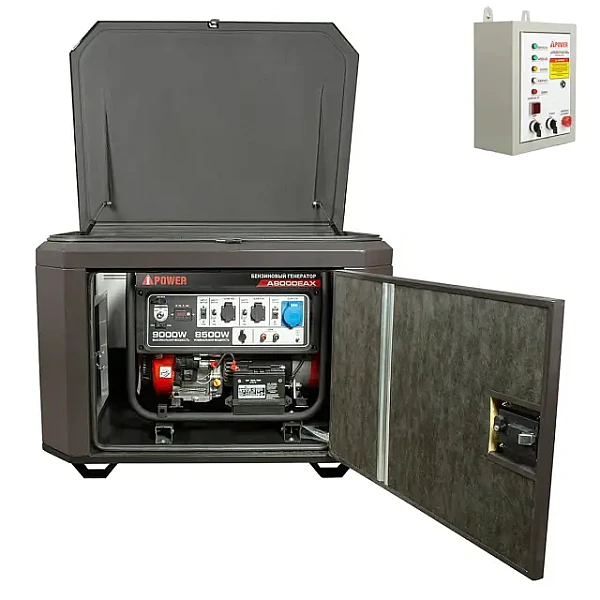 Купить Генератор A-iPower A9000EAX в тихом зимнем кожухе 1200 RAL 8019 + блок автозапуска A-iPower 230 В, 50 А в Ульяновске легко — просто позвоните по телефону: 8-800-551-11-01