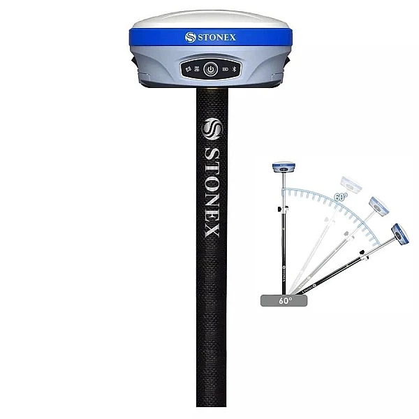 Stonex S900A имеет встроенный датчик E-Bubble, позволяющий производить измерения трудных точек с не выравненной вехой. Вы можете измерять точки даже если отклонение вехи до 30°, при сложных условиях эксплуатации и при наличии магнитных полей.