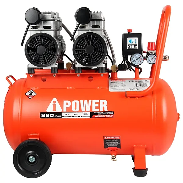 Купить Компрессор поршневой безмасляный A-iPower AC290/50LF в Ульяновске легко — просто позвоните по телефону: 8-800-551-11-01