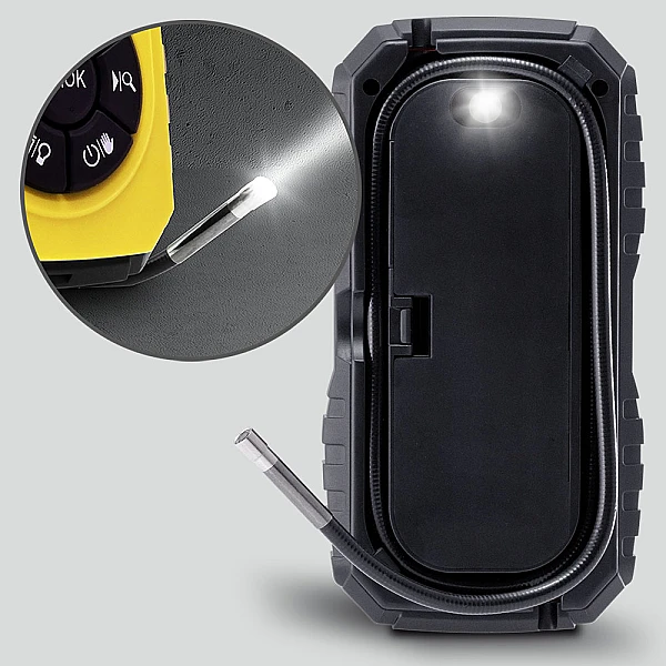 Идеально подходит для менеджеров объектов, технических специалистов или частных пользователей. Если требуется быстрый и надежный эндоскопический визуальный осмотр, BO22 является идеальным помощником. Независимо от того, хотите ли вы осмотреть внутренние детали машины или получить представление о пустотах, доступ к которым возможен только через небольшие отверстия: благодаря небольшому и полужесткому зонду с гусиной шеей с мини-камерой диаметром всего 5,5 мм устройство идеально подходит для осмотров автомобилей и для выявления плохо видимых узких пространств, таких как зазоры, дренажные трубы, трубы или кабельные каналы. Гибкий полужесткий зонд с гусиной шеей длиной 95 см можно вставлять в небольшие отверстия. Свет, обеспечиваемый 6 светодиодами, регулируется в четыре этапа и идеально освещает окружающую среду, обеспечивая высококачественные изображения для осмотра, даже в воде. Цветной ЖК-дисплей обеспечивает четкие фотографии и видео с разрешением 1280 x 720 пикселей. 3х-кратный зум увеличивает изображение. Полезная функция поворота изображения позволяет поворачивать изображение на 180° и облегчает просмотр на дисплее.