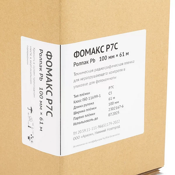 Рулонная пленка ФОМАКС Р7 относится к мелкозернистым высококонтрастным рентгеновским пленкам. Изготавливается в России в соответствии с ТУ 20.59.11-111-96651179-2022, из полуфабриката IX100 производства Fujifilm Corporation.