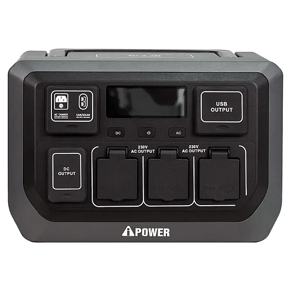 Электростанция A-IPOWER APS1200 имеет компактные размеры и легкий вес, что делает её удобной для транспортировки. На крышке корпуса расположена ручка, которая позволяет легко переносить устройство, будь то поход или поездка на пикник. Габаритный дисплей на передней панели показывает уровень заряда и оставшееся время до полной подзарядки, что позволяет вам всегда быть в курсе состояния устройства.