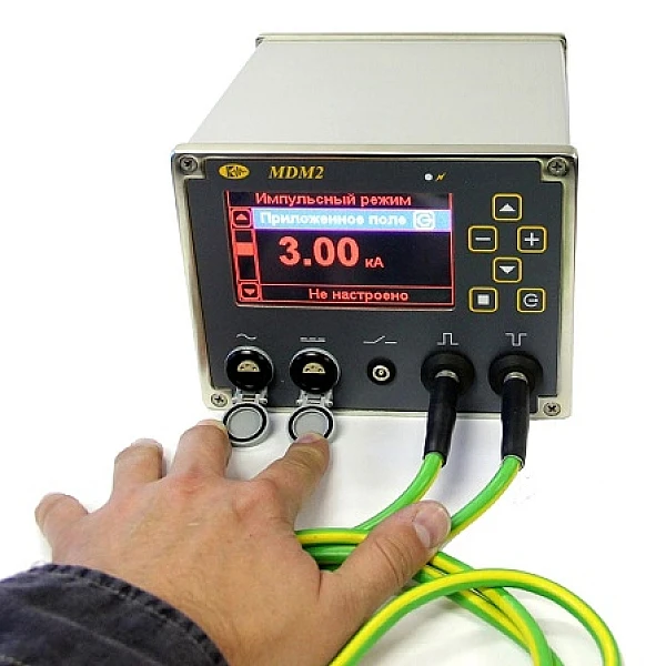 Применение последних достижений электронной техники и многолетний опыт работы позволили произвести настоящую революцию в магнитопорошковом методе, благодаря которой дефектоскописту нет нужны перетаскивать к месту контроля дефектоскопы типа ПМД-70 с массой 50 кг и прокладывать сетевое питание. МДМ-2 обладает высокой амплитудой импульсного тока в 3кА и легко помещается в наплечную сумку.