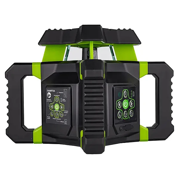 Для недопущения повреждения лазерной головки в процессе эксплуатации ротационный нивелир RGK SP-312G снабжен верхней крышкой, усиленной ребрами жесткости. 4 крупноразмерные ручки, позволяющие удобно переносить и устанавливать прибор, выполняют роль дополнительной защиты от механических воздействий. Благодаря параллельной конструкции они могут применяться как опора при использовании изделия для проецирования вертикальной плоскости, с установкой на грунт или любую поверхность. Также предусмотрена возможность крепления изделия на штативе, для чего на корпусе имеются два перпендикулярных винтовых крепления.