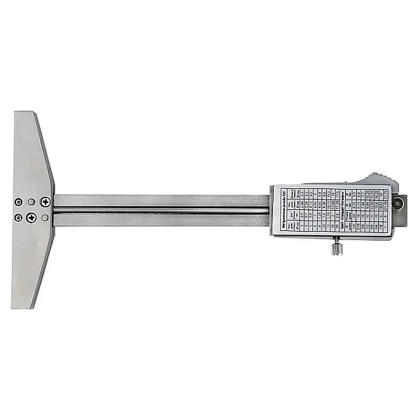 Штангенглубиномер называется SCG-100, где SC означает - штангенциркуль, G - глубиномер, а 100 - это максимальное значение измерений в мм.