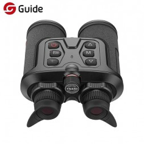 Guide TN430 - бинокулярный тепловизор от Guide Infrared (Китай), тепловизионный бинокуляр оснащён матрицей 400×300 с плотностью 17um, объективом 35mm/F1.2 с углом обзора 11.1°× 8.3°, частота кадров 50Гц. Тепловизор монокуляр в его стандартном виде не всегда удобен в использовании, поэтому многие охотники предпочитают тепловизионные бинокли, такие как TN430.