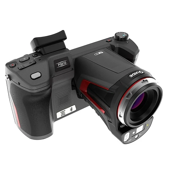 Тепловизионная камера получила новое поколение неохлаждаемых ИК-детекторов, которые обеспечивают более чёткие тепловые изображения и более высокую точность измерений. Благодаря поворотному объективу и структуре экрана, модулю камеры видимого света с разрешением до 13 миллионов пикселей, высокоточному дальномеру и профессиональным функциям, такими как распознавание имен AI, интеллектуальное измерение площади, гибкие настройки коэффициента излучения по областям. Реконструкция сверхвысокого разрешения может увеличить количество пикселей инфракрасного изображения в 4 раза по сравнению с оригиналом. Камера Guide PS610 способна удовлетворить потребности любого специалиста по термографии.