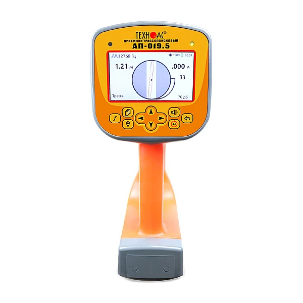 В составе комплекта приемник в виде моноблока с цветным ЖК дисплеем, на который выводится изображение трассы и в автоматическом режиме происходит расчет глубины залегания коммуникации до 30 м, а также величины тока в линии.