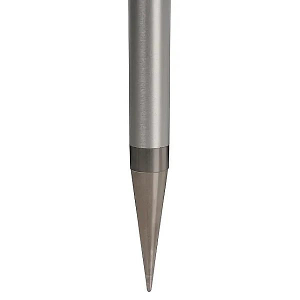 Устройство выполнено из алюминиевого сплава и представляет собой трубчатую двухсекционную раздвижную конструкцию с внешним диаметром 25 мм. Длина вехи RGK CLS11 в сложенном положении составляет 1,24 м, а в разложенном при максимальном вылете – 2,15 м. Наружная секция в верхней части снабжена рукояткой для удобства удержания. Закрепленный снизу изделия заостренный наконечник упрочнен методом термической обработки для повышения износостойкости.